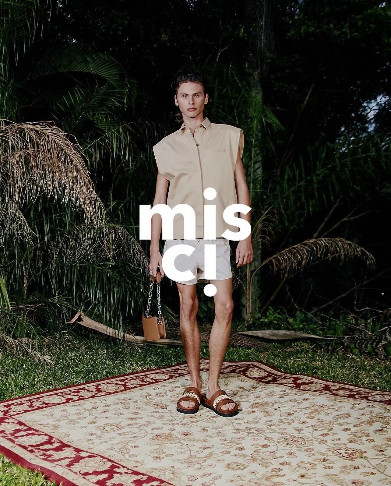Based in São Paulo and created by Airon Martin from Mato Grosso in 2018, Misci is a rising brand in the Brazilian fashion world. The name comes from the term “miscegenation,” meaning the mixing of multiple people and races, and conveys the brand’s mission of communicating the essence of Brazil and its regionality. Martin uses Misci to showcase the importance of individuality in Brazilian design while highlighting the country’s pride in our exceptional product quality and ethical and sustainable manufacturing process. He prioritizes using primarily local raw materials and labor, seeking to create products that are Brazilian in every way. Popular national materials utilized by the brand include linen, cotton, and pirarucu leather (also used in accessories and furniture).