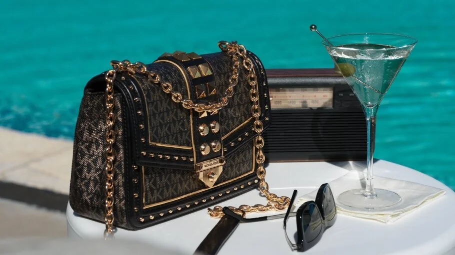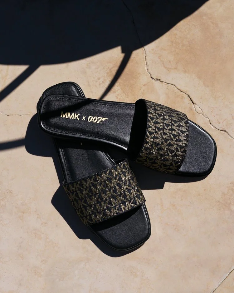 The collaboration highlights a new gold and black Signature MMK x 007 logo print which was created exclusively for this collection. The one-piece swimsuit features the MMK x 007 logo indiscreetly situated on the back. The graphic cropped t-shirt has the phrase “Agent 007” written on it. The 007 signature print Sadler slides features a fashionable design with the partnership's title imprinted into the sole. A belted long-sleeve suit, backpack, tote, glitzy shoulder bag embellished with the Michael Kors signature “MK” logo, a Bond Signature print suitcase, a Beck Weekender bag, and 007 luggage tags are also included in the collection.
