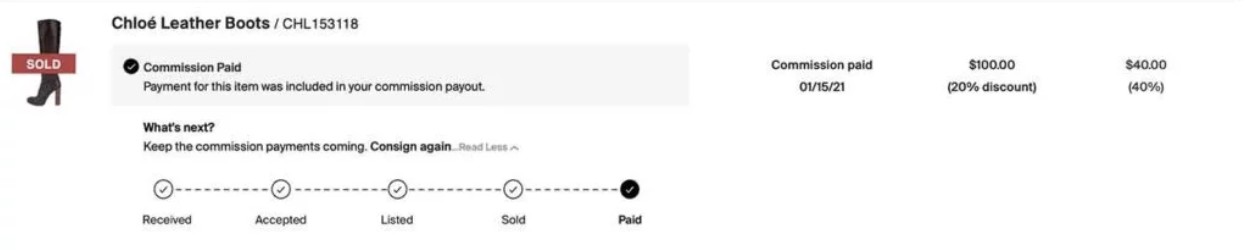 The RealReal offers two services to its clientele: the opportunity to buy items and the opportunity to sell them. For people like me who were looking to build their designer closet from the ground up, The RealReal was the perfect starting point for purchases. However, for those who were looking to sell some of their excess designer goods, the choice on where to sell their goods became a bit more complicated. There are pros and cons to consignment over individual selling on platforms such as EBay and Poshmark. A major pro is that there is significantly less brain work needed in the process of consignment; you simply hand the goods off to your intermediary, and they handle the rest. If you choose to sell the item on your own, you are responsible for the process of listing, marketing, negotiating, packaging, and shipping (trust me, it’s much more complicated than you might think). There are two cons to take into consideration when choosing to sell with an intermediary: the commission rates and the possibility of damaged or lost inventory. The RealReal’s website has a very comprehensive guide to their tiered commission program.