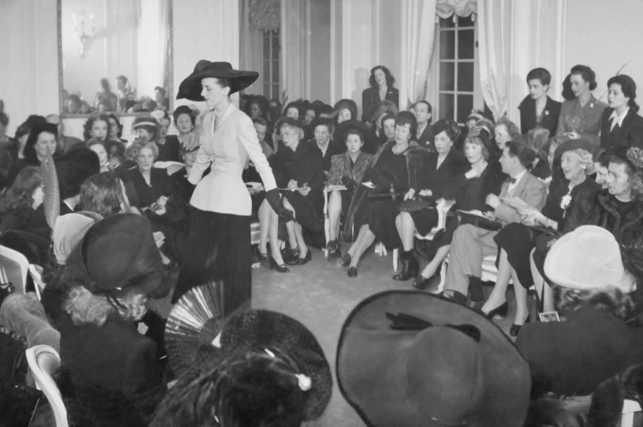 The “New Look” functioned like the body of a theatre. The images of the designs entered public consciousness not as accessible fashion, couture wasn’t meant to be, but as a spectacle of something radically ornamental that could still be imagined in the aftermath of such tragedy.