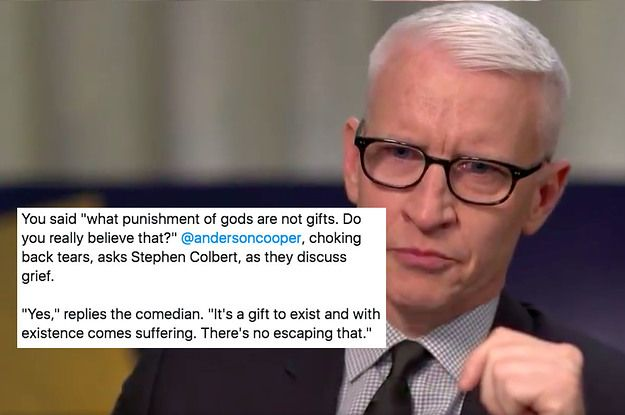Colbert not only accepts the grief, but he is grateful for it. His words offer a reminder that to exist is a gift, even when it hurts. Pain we feel is just the shadow of joy, a testament of how deeply we once loved or were loved. The ache only runs so deep because the joy once did too.