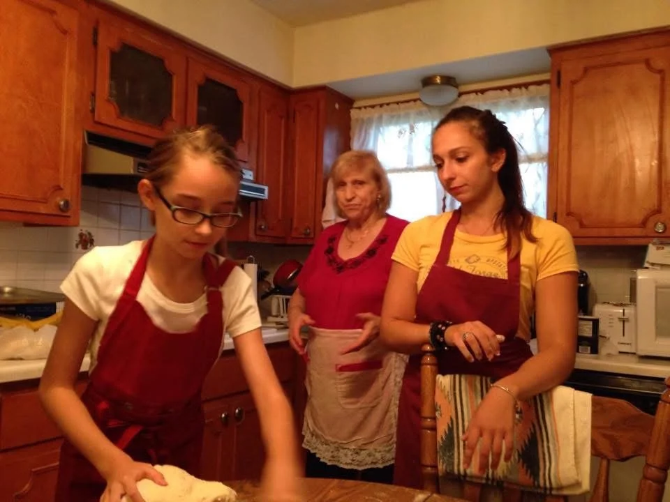 My cousin and I making bread with our grandmother. Please ignore the side part and Nordstrom Rack glasses.