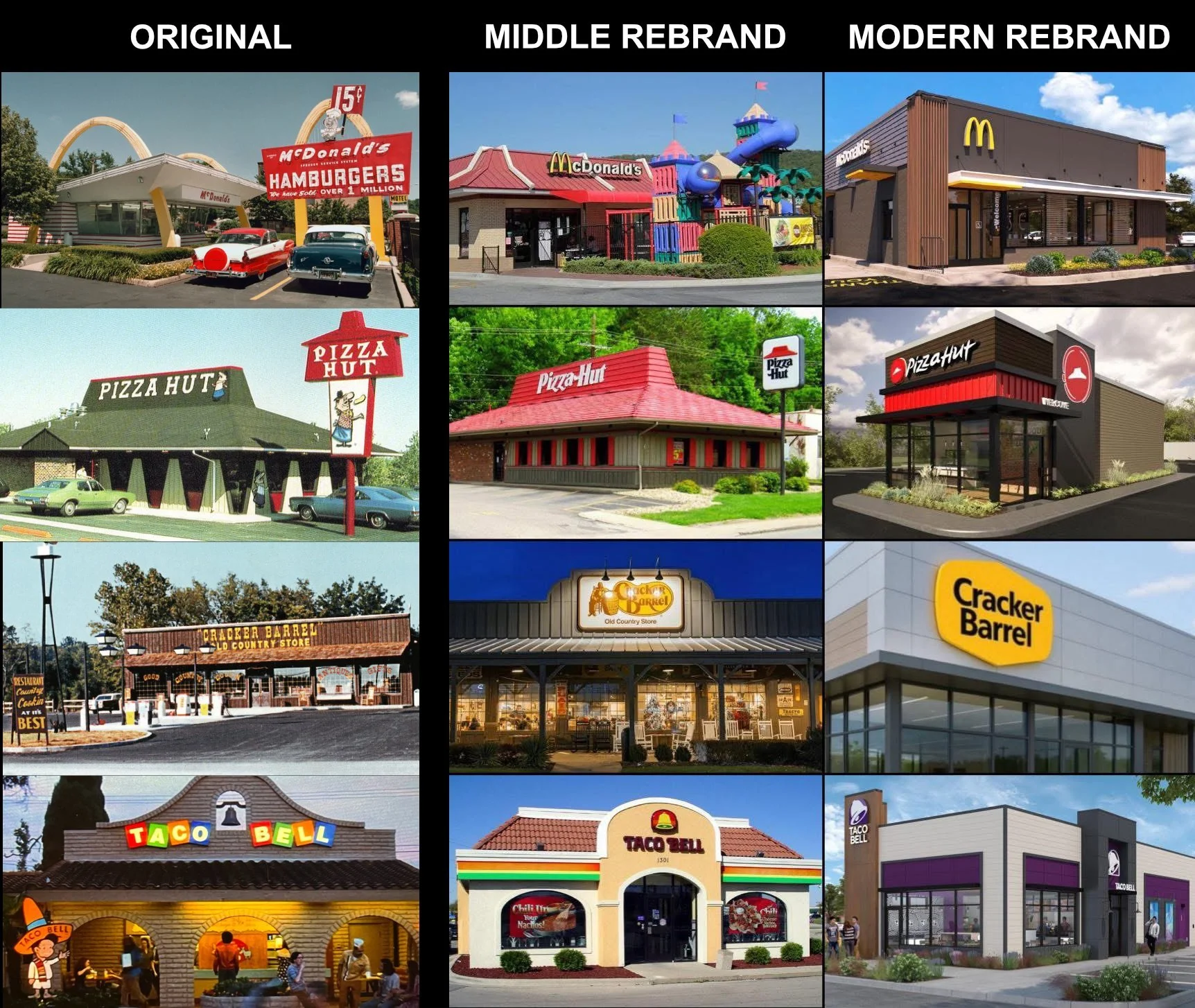 Today, the colorful and unique architecture is replaced with gray, minimalistic boxes, meant to prioritize convenience and transaction. People have been replaced with screens and AI in the drive-thru. Indoor playgrounds were deemed a liability and decreased in popularity.