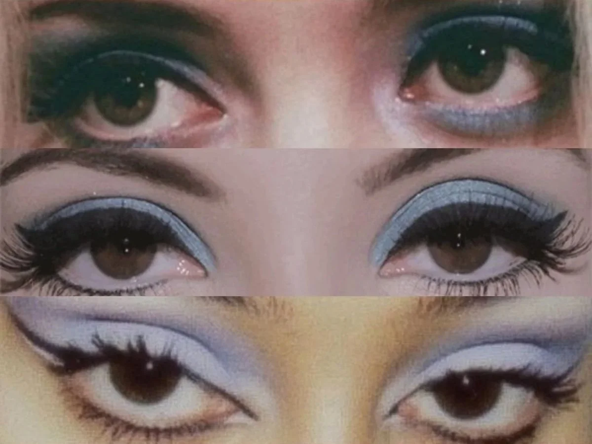 Blue eyeshadow didn’t disappear in the ’80s; it only amped up. Saturated shades like electric blue, turquoise, and midnight navy were swept across lids with fearless intensity. Icons like Cyndi Lauper and Prince turned makeup into a visual rebellion, using color to blur gender lines and challenge mainstream ideals. Blue became less about beauty and more about identity, becoming a bold, theatrical statement worn loud and proud.